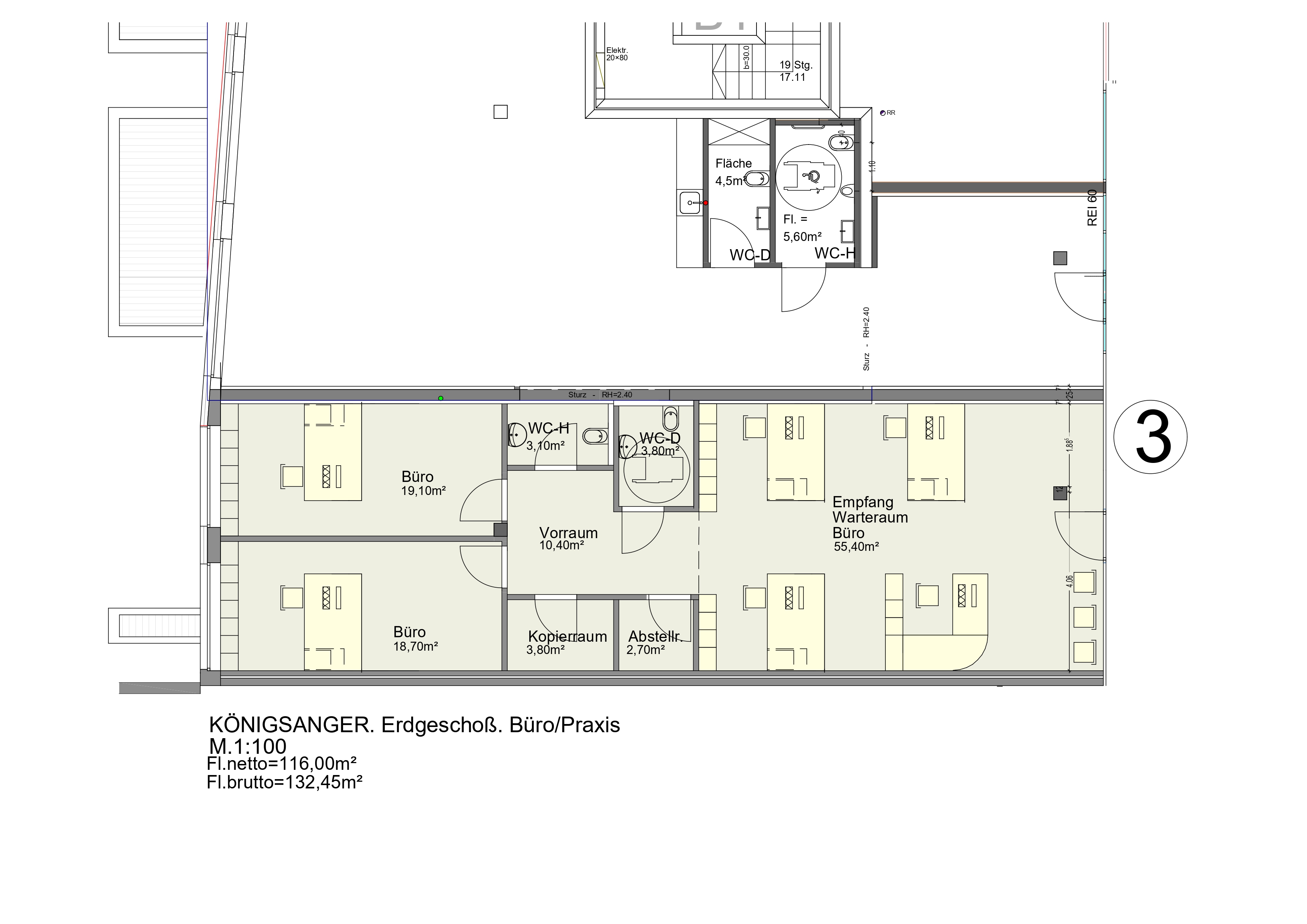 3: Zum Verkauf steht ein Bürolokal im Erdgeschoss. Ins Stadtzentrum von Brixen sind es nur wenige Minuten zu Fuß oder mit dem Fahrrad.