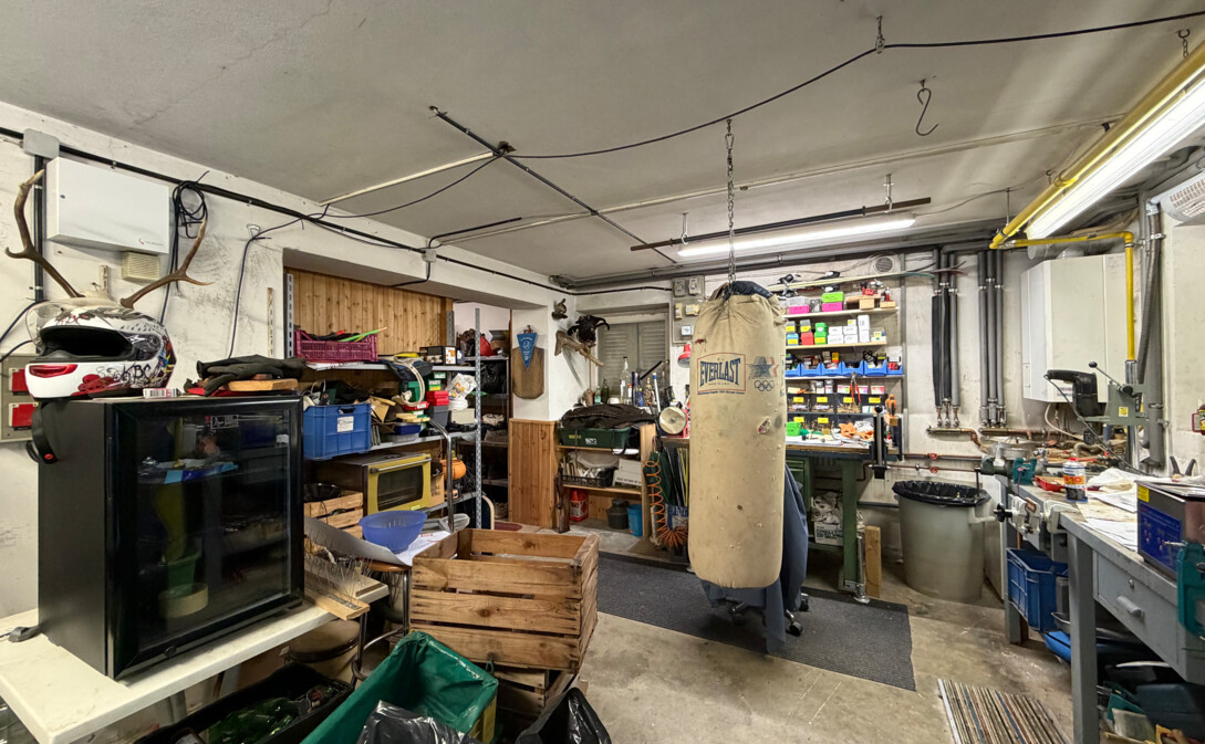 Im Erdgeschoss befindet sich ein großzügiger Kellerbereich mit Garage, der neben den Stellflächen auch zusätzliche Nutzungsmöglichkeiten (z. B. Hobby-, Lager- oder Technikräume) bietet.
