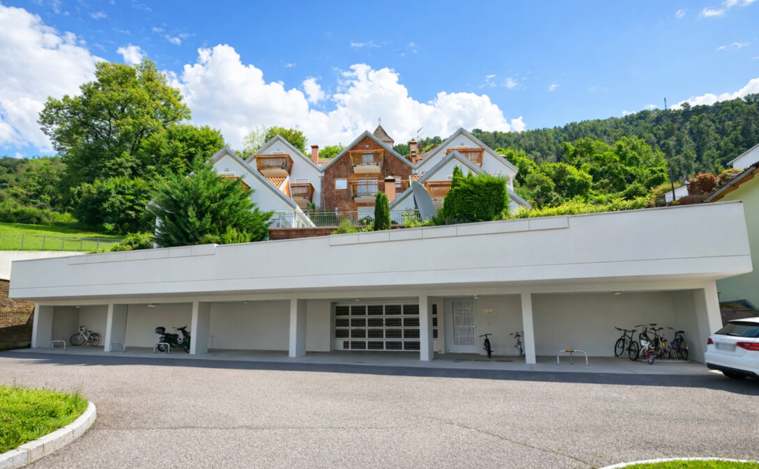 Zur Wohnung gehören ein Hobbyraum, ein Keller und ein Autoabstellplatz im Freien. Es gibt die Möglichkeit eine Doppelgarage für 50.000 € oder einen überdachten Stellplatz für 10.000 € separat zu erwerben.