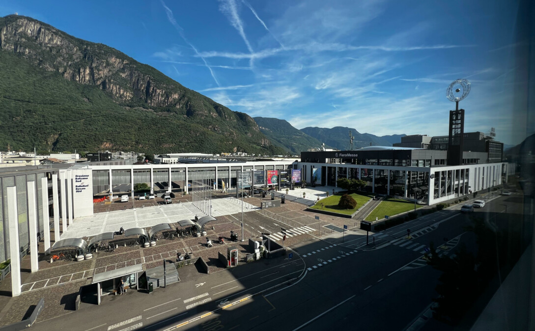 Direkt gegenüber befindet sich der Zugbahnhof Bozen Süd