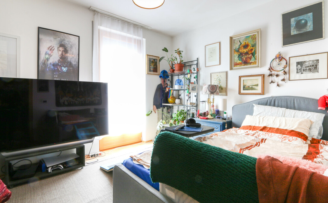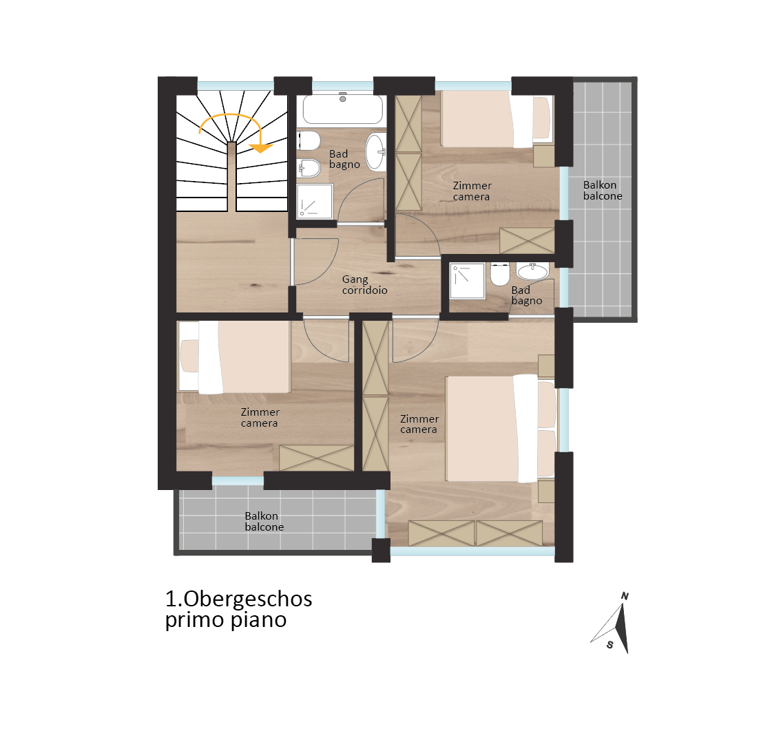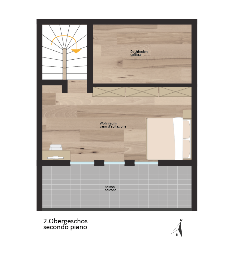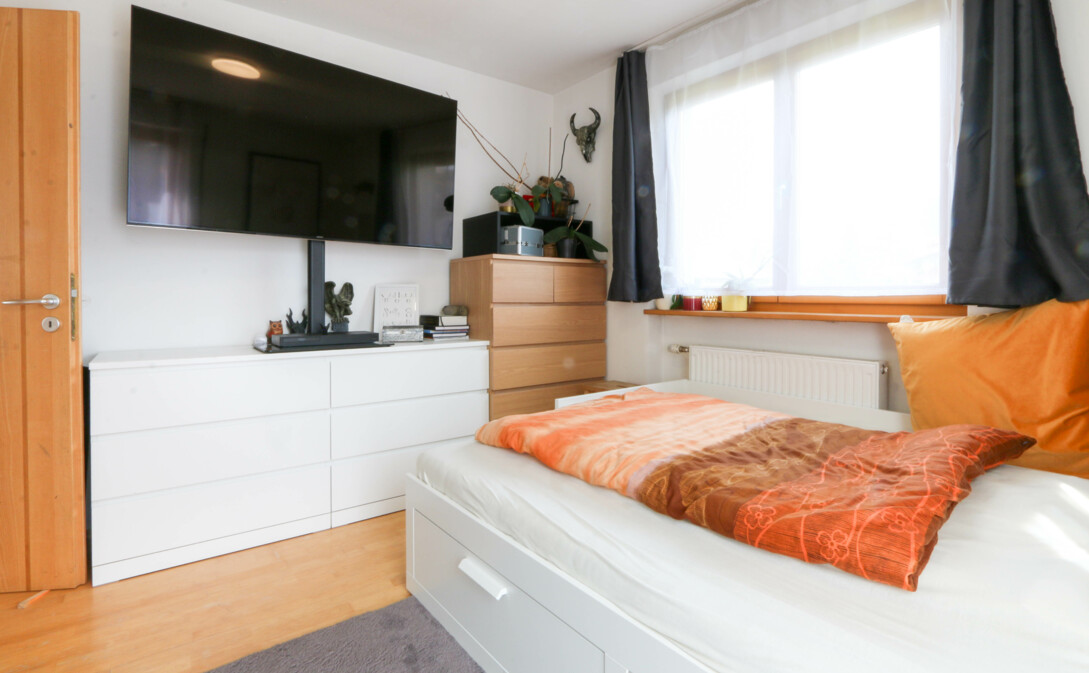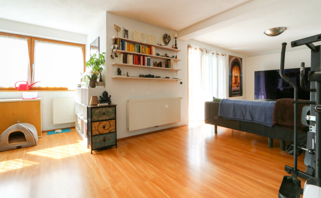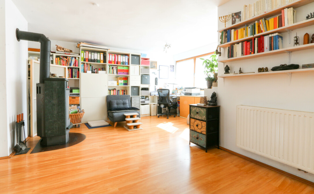 Im zweiten Obergeschoss steht ein weiterer großzügiger Raum mit Balkon zur Verfügung, der flexibel genutzt werden kann – sei es als zusätzlicher Wohnraum, Schlafzimmer, Homeoffice oder Hobbybereich.