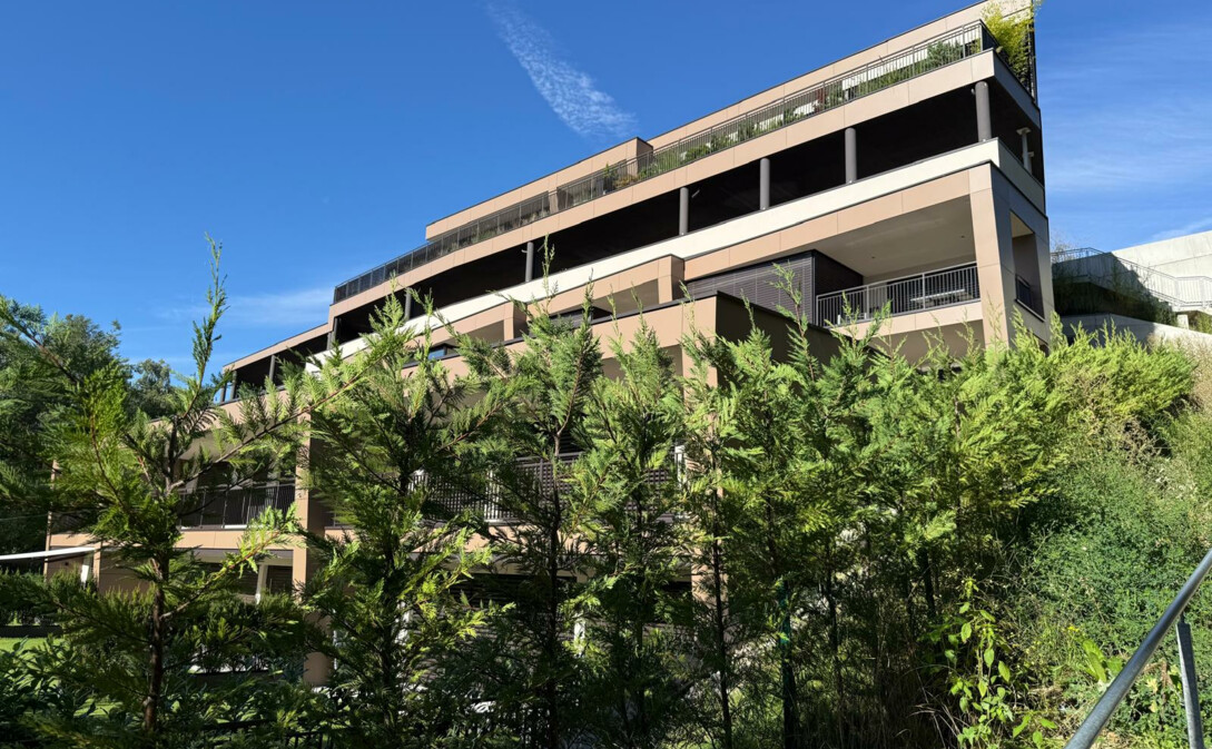 Die architektonische Gestaltung überzeugt durch eine elegante, niedrige Bauweise, die von der Zufahrt aus kaum sichtbar ist und so Exklusivität mit Zurückhaltung verbindet. Zwei Gebäudeteile sind perfekt ins Terrain integriert und erlauben natürliche Belichtung sowie eindrucksvolle Panoramablicke.