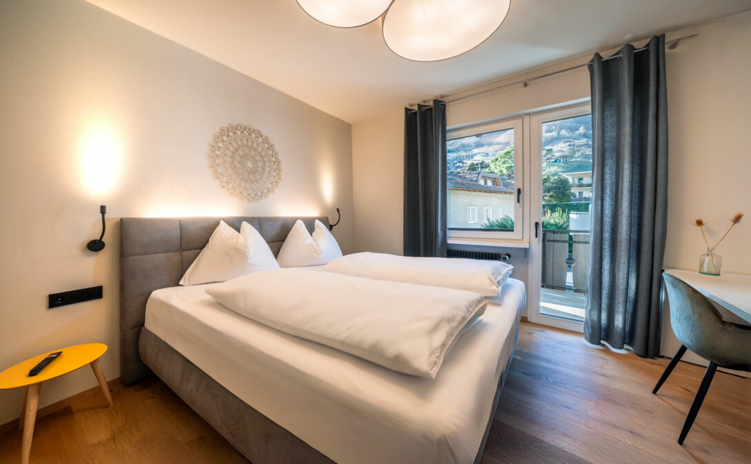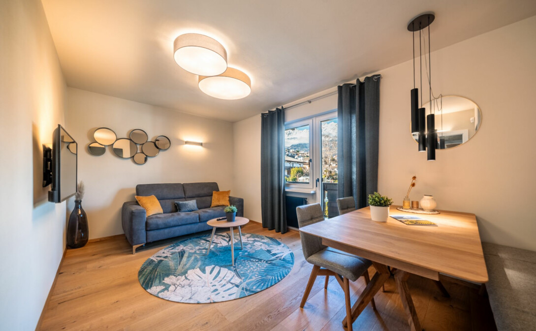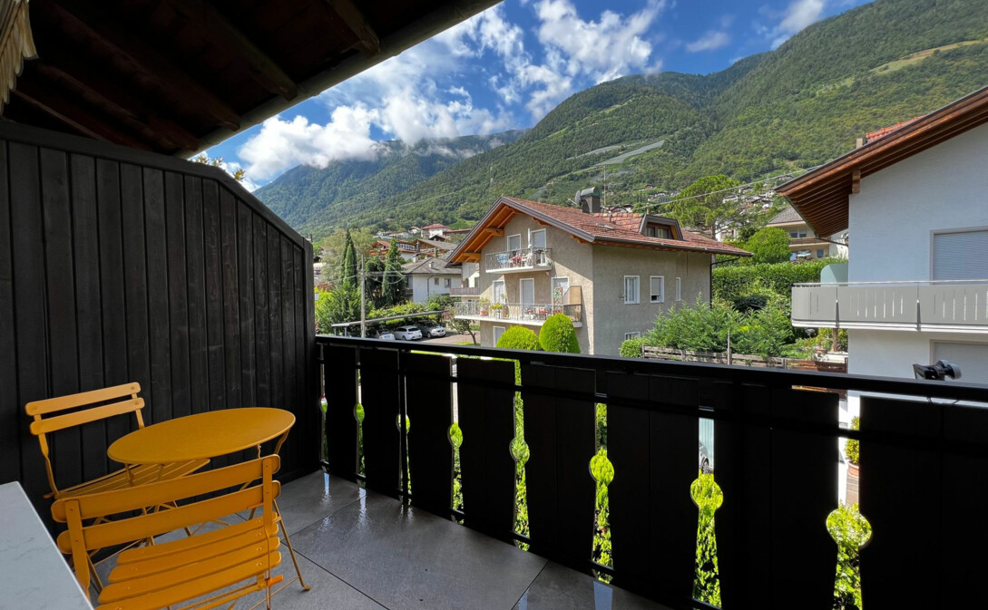 Wir vermieten eine wunderschöne, neu renovierte Zweizimmerwohnung mit zwei Terrassen im letzten Stockwerk eines typischen Südtiroler Wohnhauses.