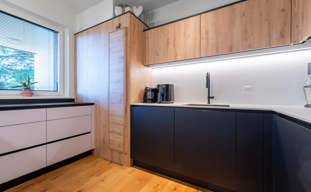 Die Einrichtung ist maßgeschneidert und von besonders hoher Qualität. Auf Wunsch kann die Wohnung vollständig möbliert übergeben werden.