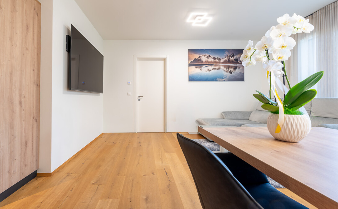 Die Ruhe der Lage, die moderne Wohnanlage, die hochwertige Ausführung, der offene und helle Wohnraum, die zwei Terrassen sowie die Möglichkeit einer vollmöblierten Übergabe machen diese Wohnung zu einer seltenen Gelegenheit auf dem Immobilienmarkt in Girlan.