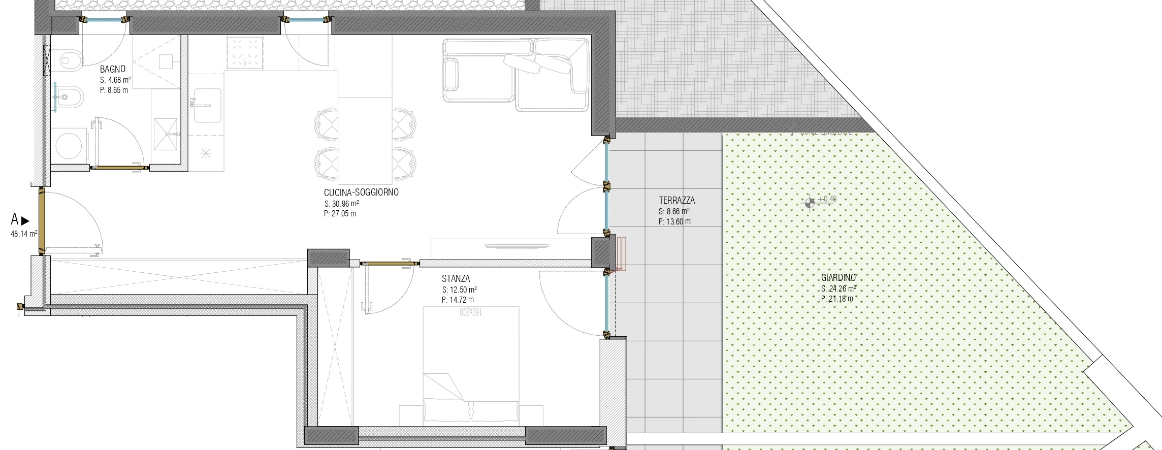 Wohnung A: Zum Verkauf steht eine neue Zweizimmerwohnung mit Terrasse und Privatgarten im Erdgeschoss.