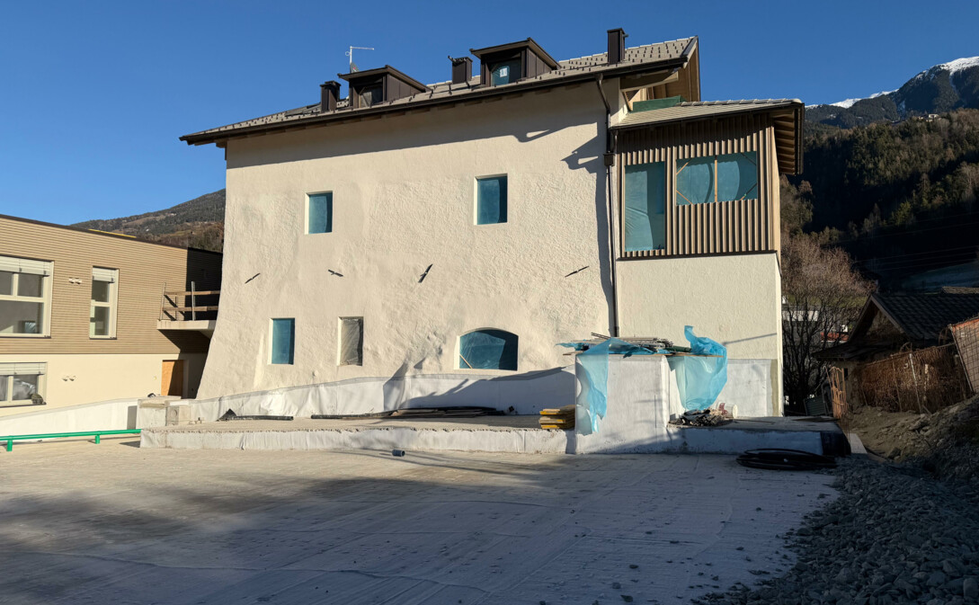 Die Fassadengestaltung (Textur-Körnung Verputz, helle Farbe, Materialien, usw.) wird in Absprache mit dem Denkmalamt vorgenommen. Es kommt ausschließlich Kalkputz zur Verwendung.