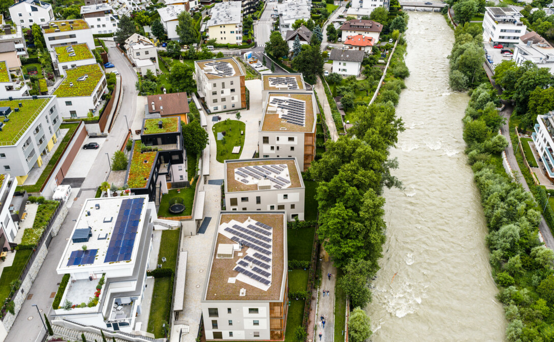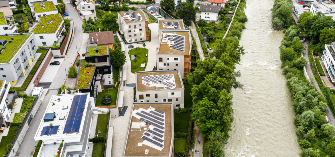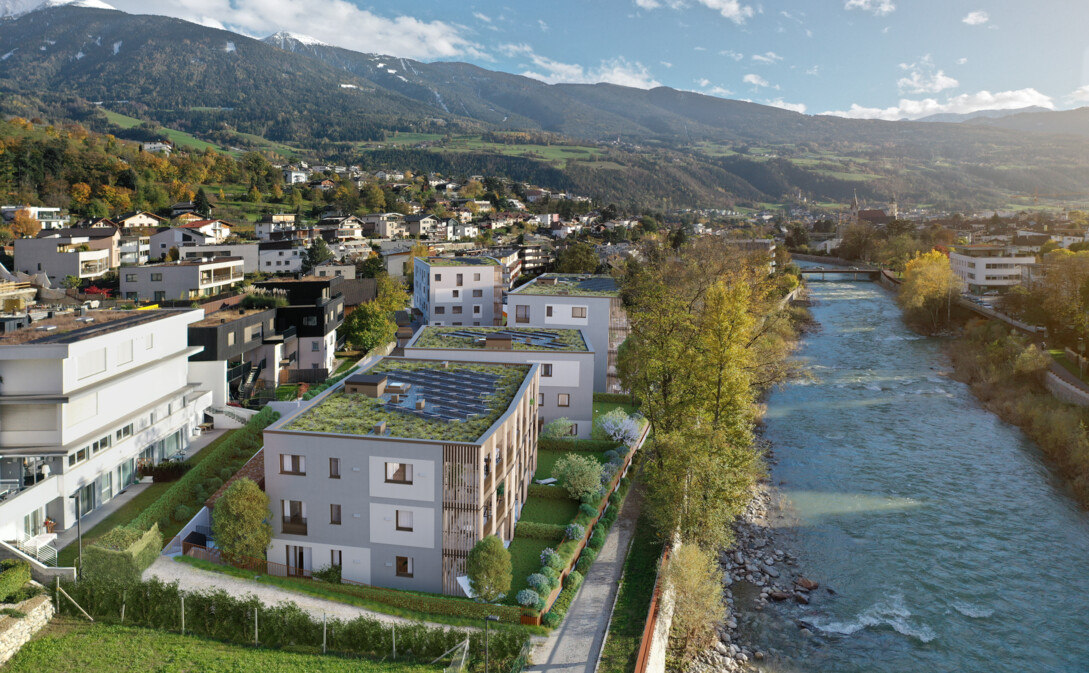 Die Wohnanlage entsteht in einer sehr ruhigen Lage mit südwestlicher Ausrichtung am wunderschönen Eisackufer in Brixen. Eine Wohnanlage im Grünen und trotzdem ist jegliche Nahversorgung in 5 Gehminuten erreichbar.