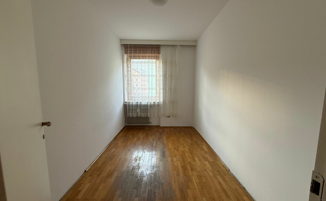 Im Herzen der Stadt vermieten wir eine helle und großzügige Dreizimmerwohnung mit zwei Schlafzimmern, Wohnzimmer, möblierte Küche, Bad und Eingangsbereich.