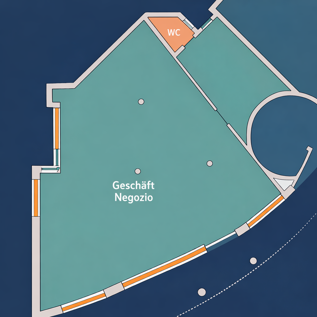 Die Lage überzeugt durch ihre sehr gute Sichtbarkeit sowie die starke Frequenz – sowohl durch Fußgänger als auch durch den Verkehr. Die zentrale Position in einem gewachsenen Stadtviertel mit umliegenden Büros, Dienstleistungsbetrieben und Wohnhäusern macht das Objekt besonders attraktiv.