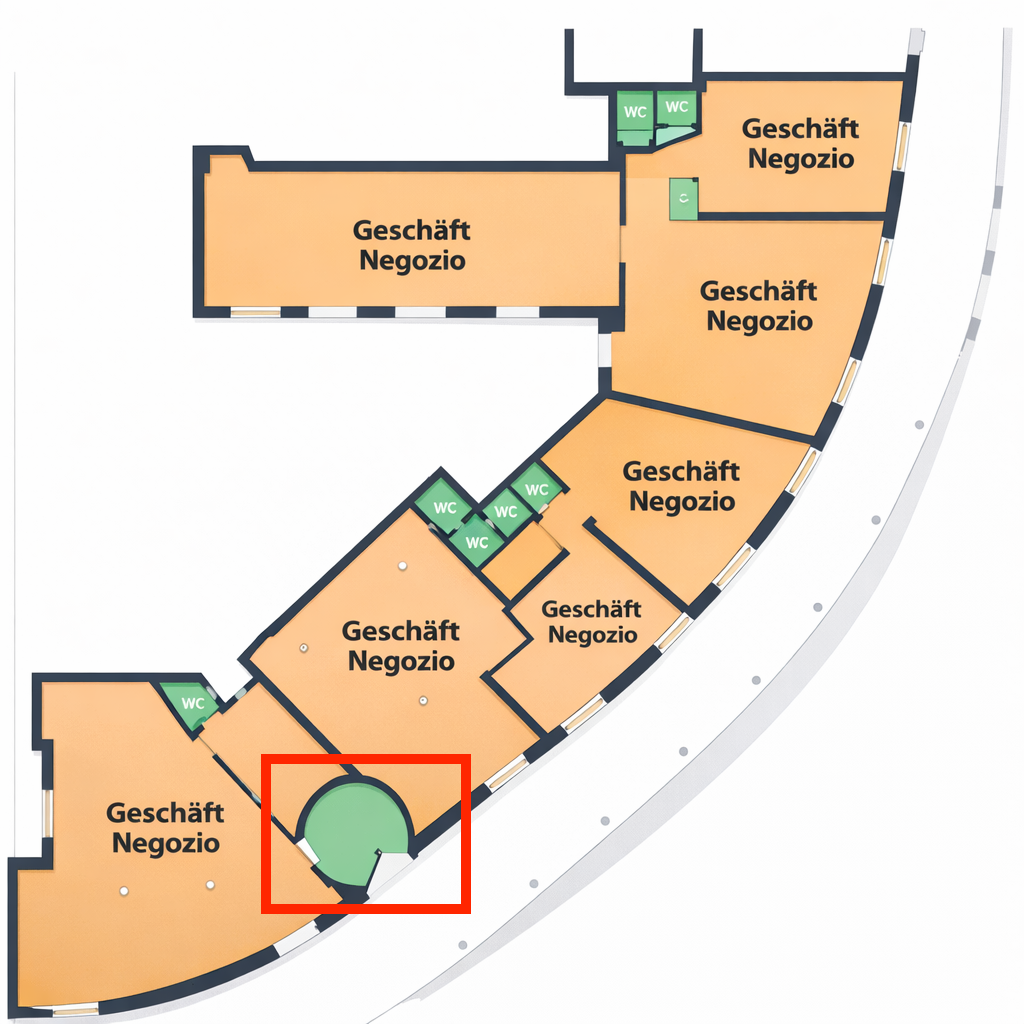 Die Lage überzeugt durch ihre sehr gute Sichtbarkeit sowie die starke Frequenz – sowohl durch Fußgänger als auch durch den Verkehr. Die zentrale Position in einem gewachsenen Stadtviertel mit umliegenden Büros, Dienstleistungsbetrieben und Wohnhäusern macht das Objekt besonders attraktiv.