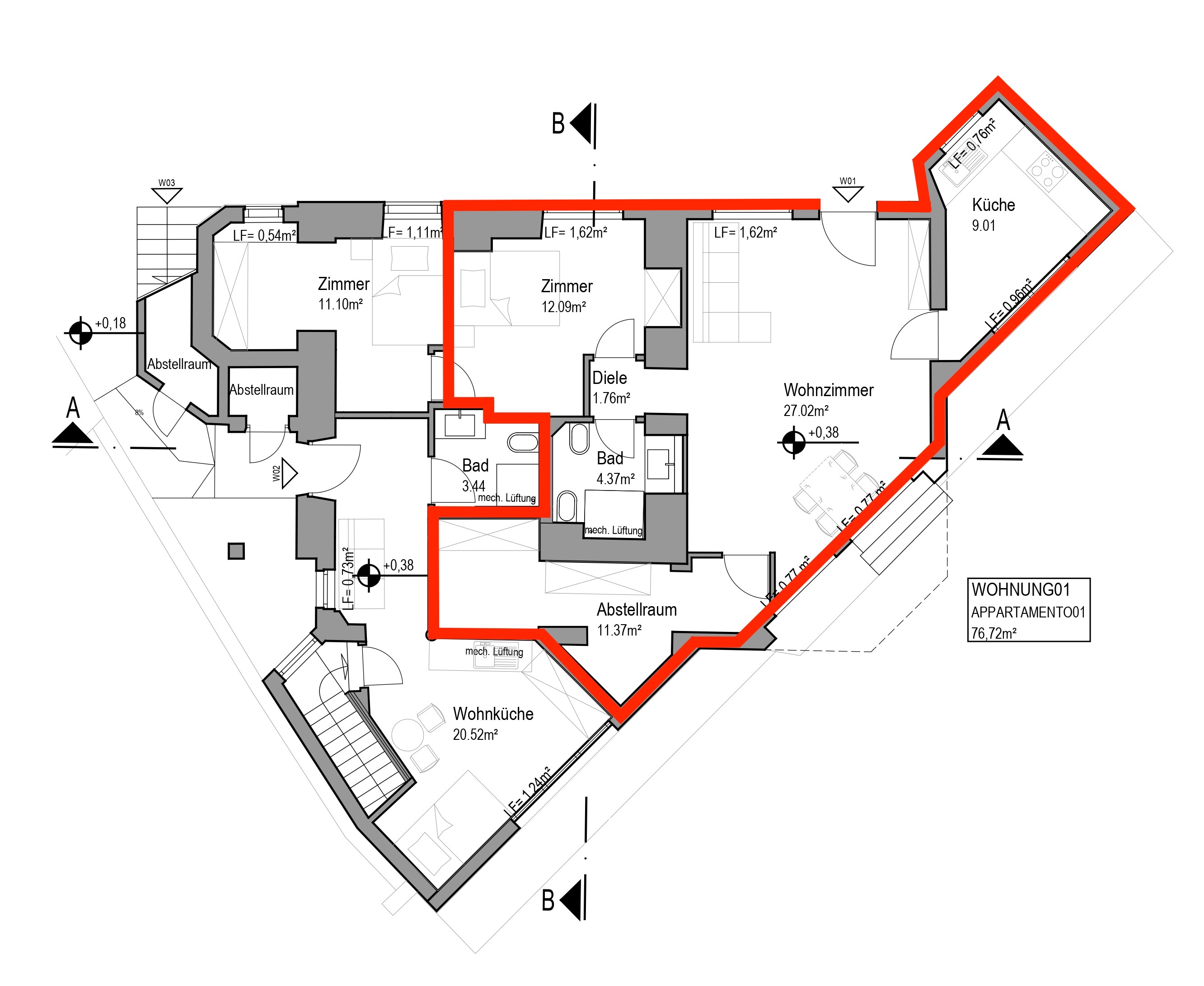 W1: Zum Verkauf steht eine neue, große Zweizimmerwohnung in der zentrumsnahen und hervorragend angebundenen Drususallee, einer der gefragtesten Lagen von Bozen.
