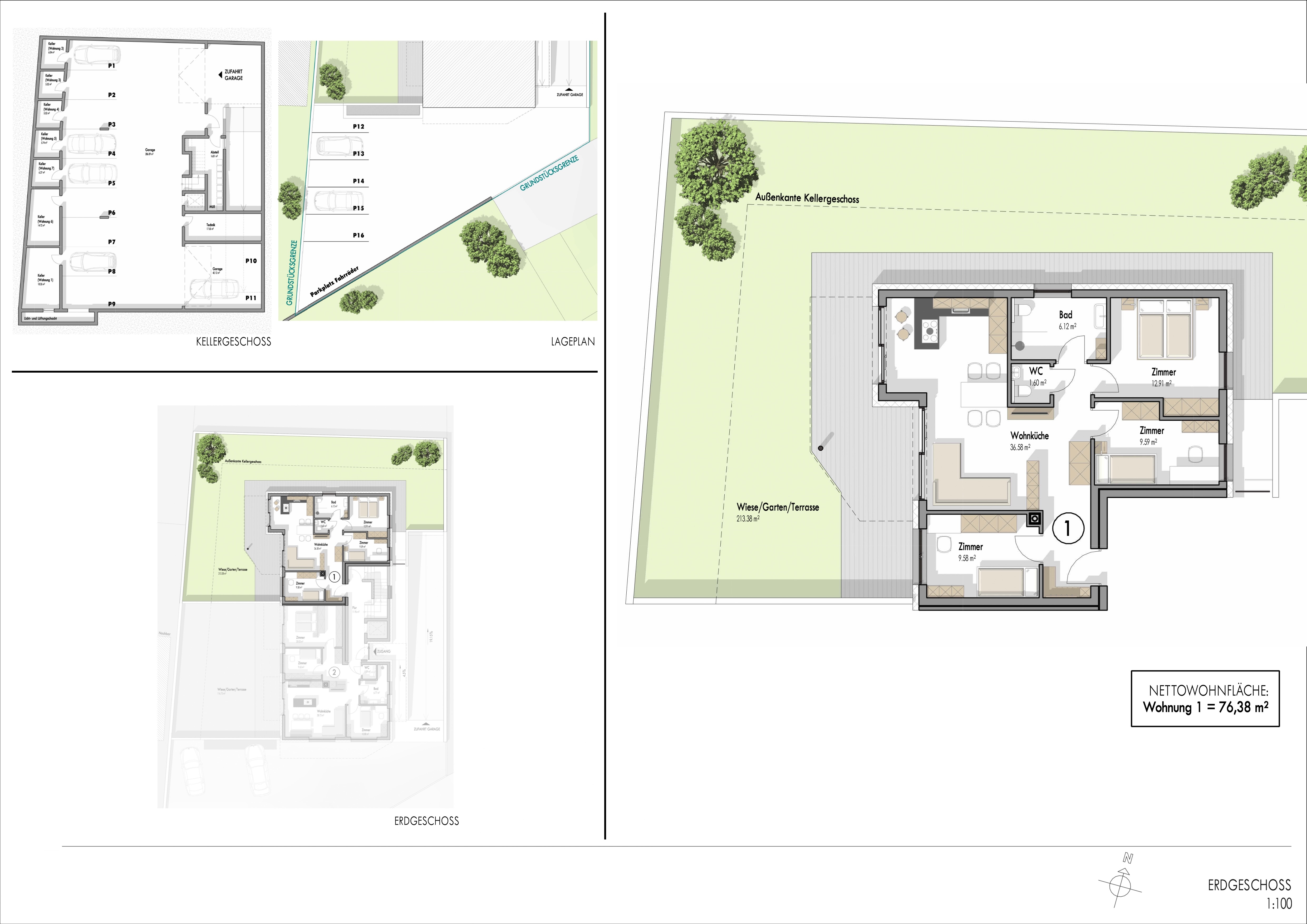 In dieser modernen und hochwertigen Wohnanlage steht eine großzügige Vierzimmerwohnung mit Terrasse und Privatgarten zum Verkauf – mit einer beeindruckenden Nettofläche von knapp 215 m².