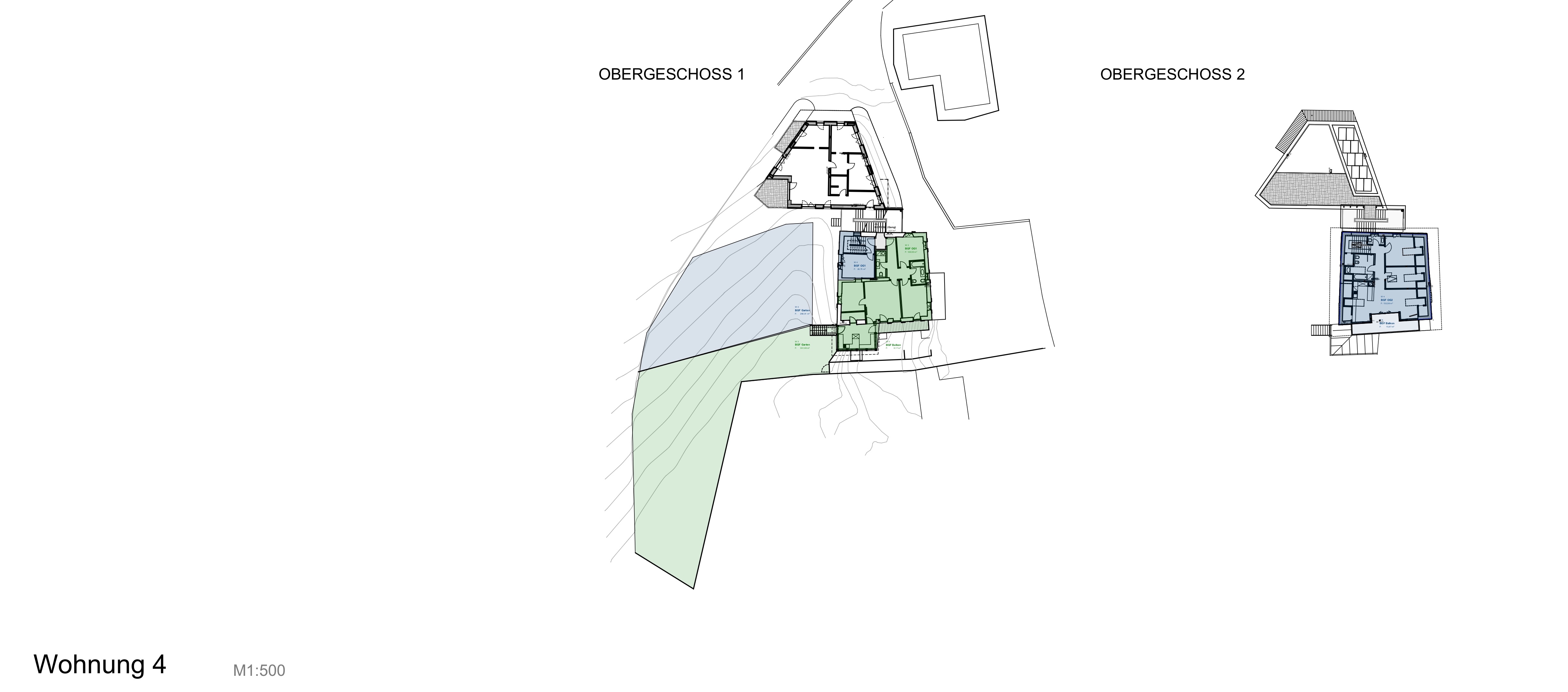 La parte storica è costituita da un antico maso, situato in mezzo ad aree verdi agricole. Garage e cantine si trovano al piano interrato.