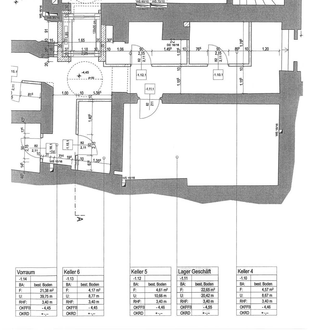 - Magazzino al piano interrato: 22,65 m²