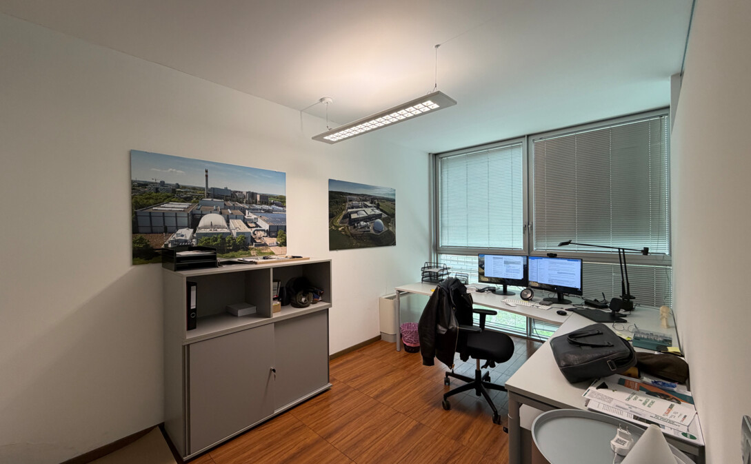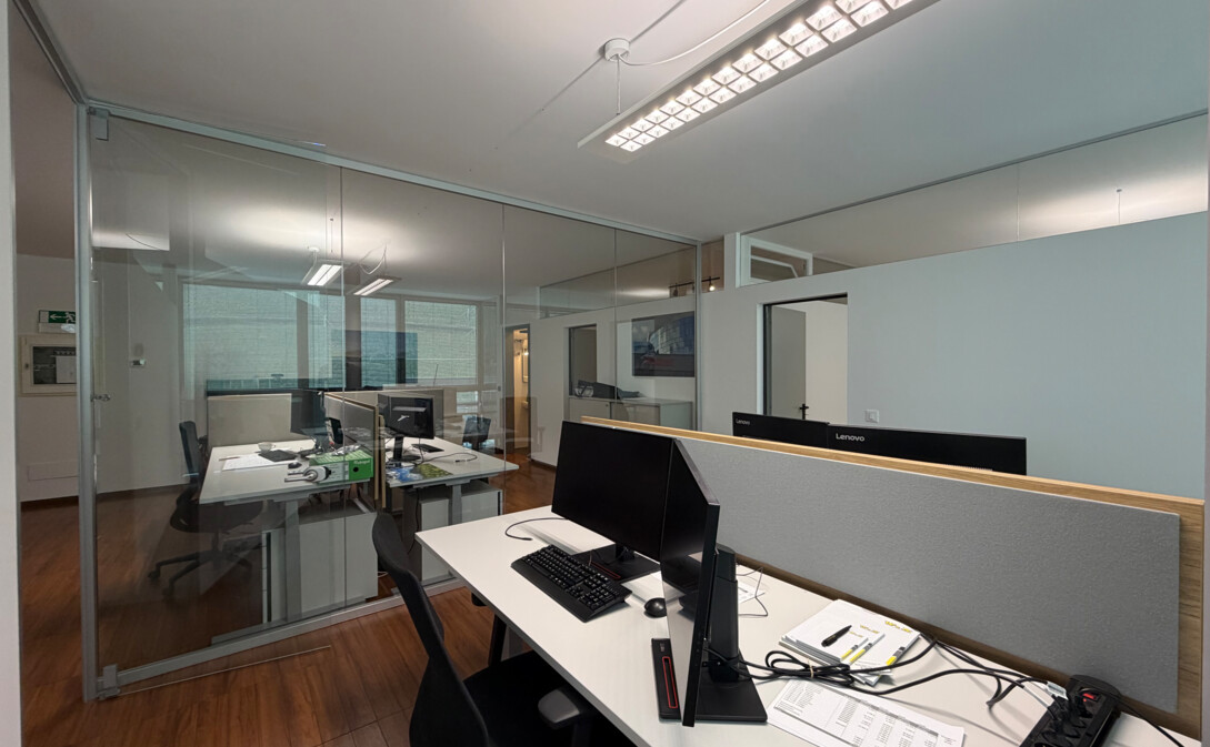 L’attuale arredamento dell’ufficio, l’illuminazione e le pareti divisorie in vetro appartengono all’attuale inquilino e verranno rimossi al momento del trasferimento. L’ufficio verrà quindi consegnato vuoto, permettendo al futuro conduttore di organizzare gli spazi secondo le proprie esigenze.