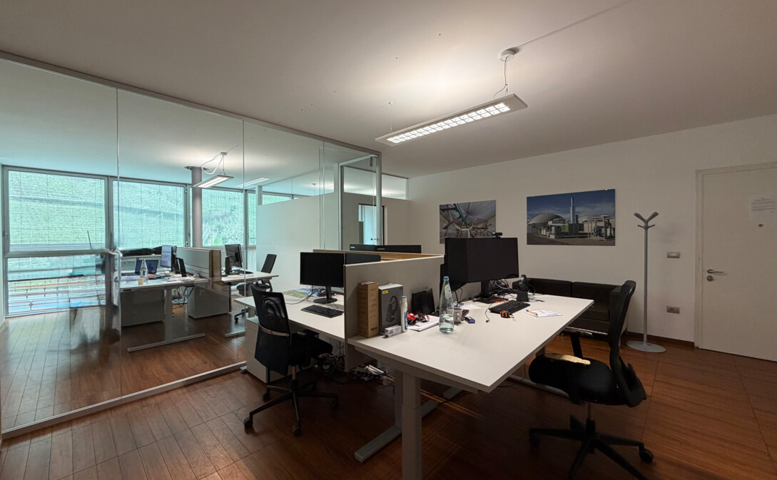 L’unità si distingue per una distribuzione funzionale degli spazi e attualmente è composta da un grande ufficio open space e due uffici separati, ideali come studi individuali oppure sale riunioni. È inoltre presente un bagno.