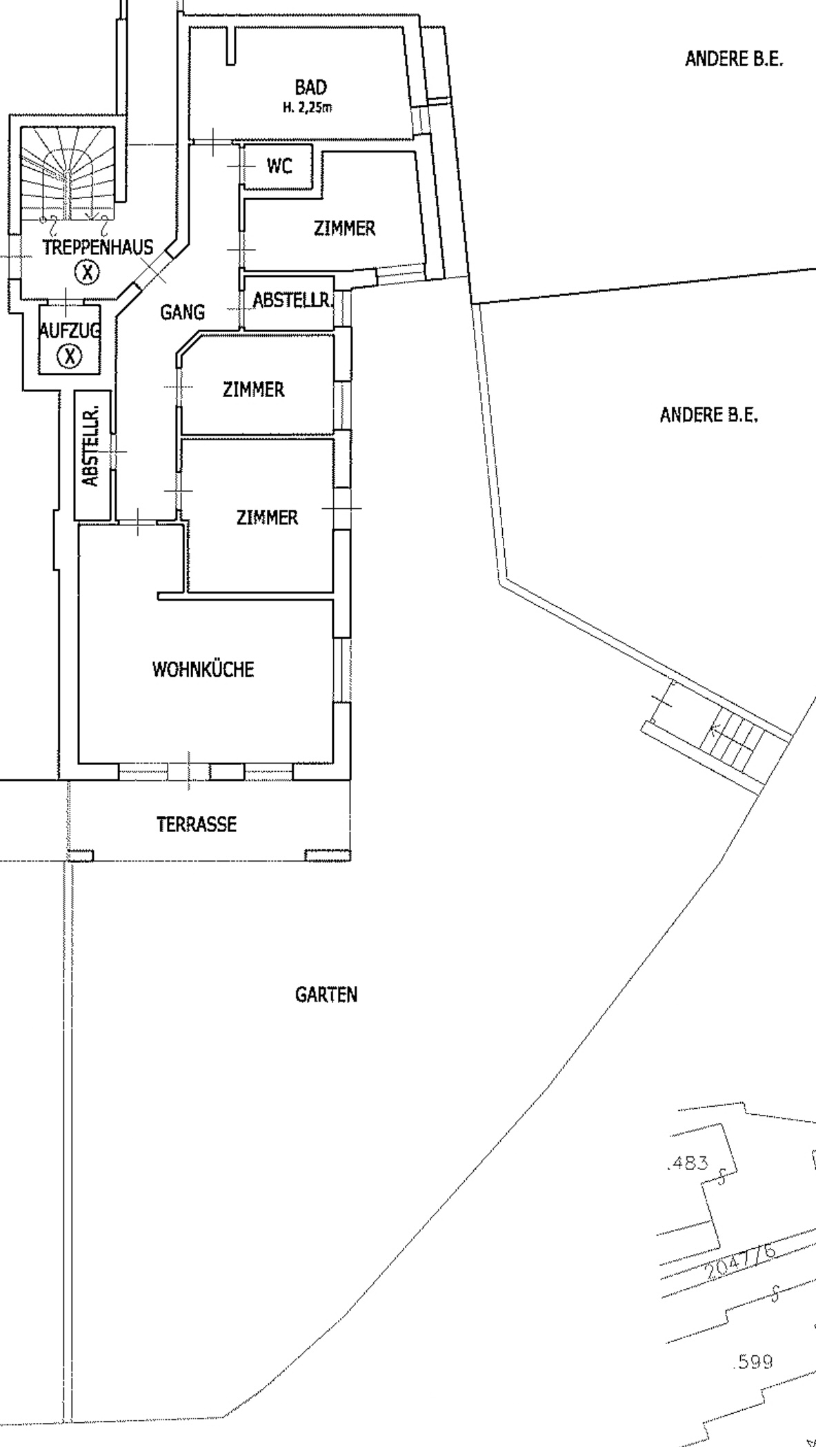 Completano la proprietà una cantina di 17,5 m², un garage di circa 45 m² e posti auto condominiali intorno all’edificio.