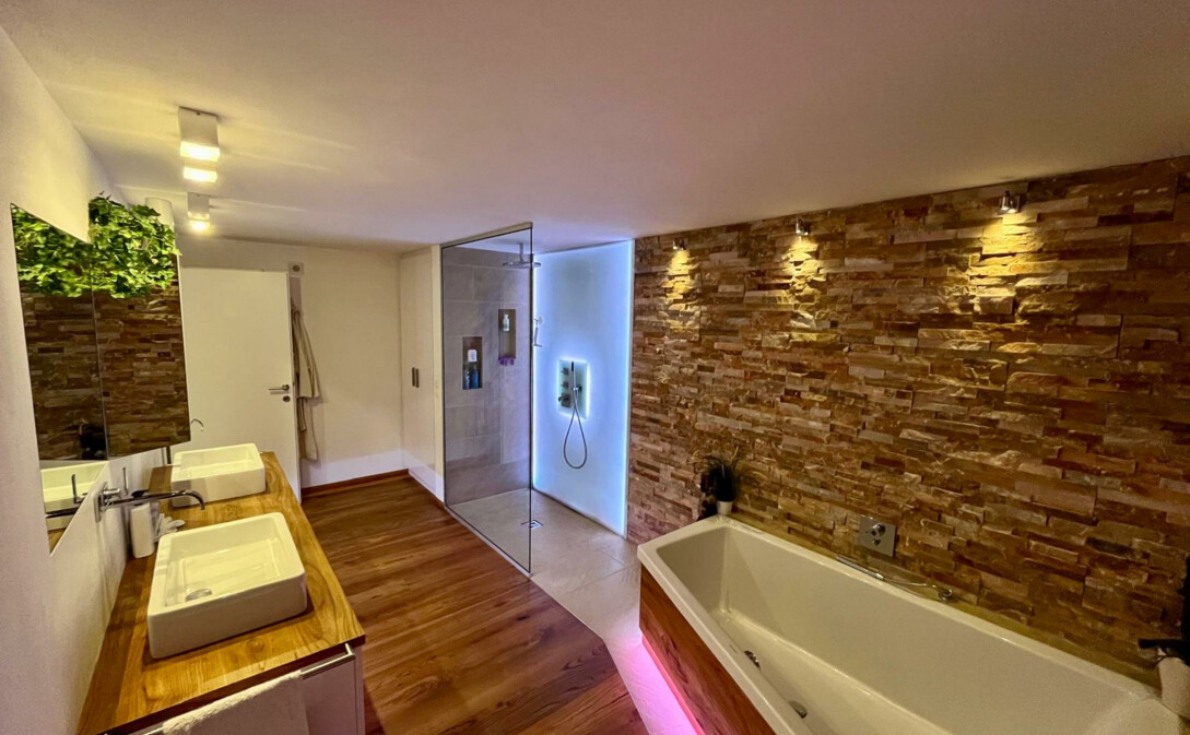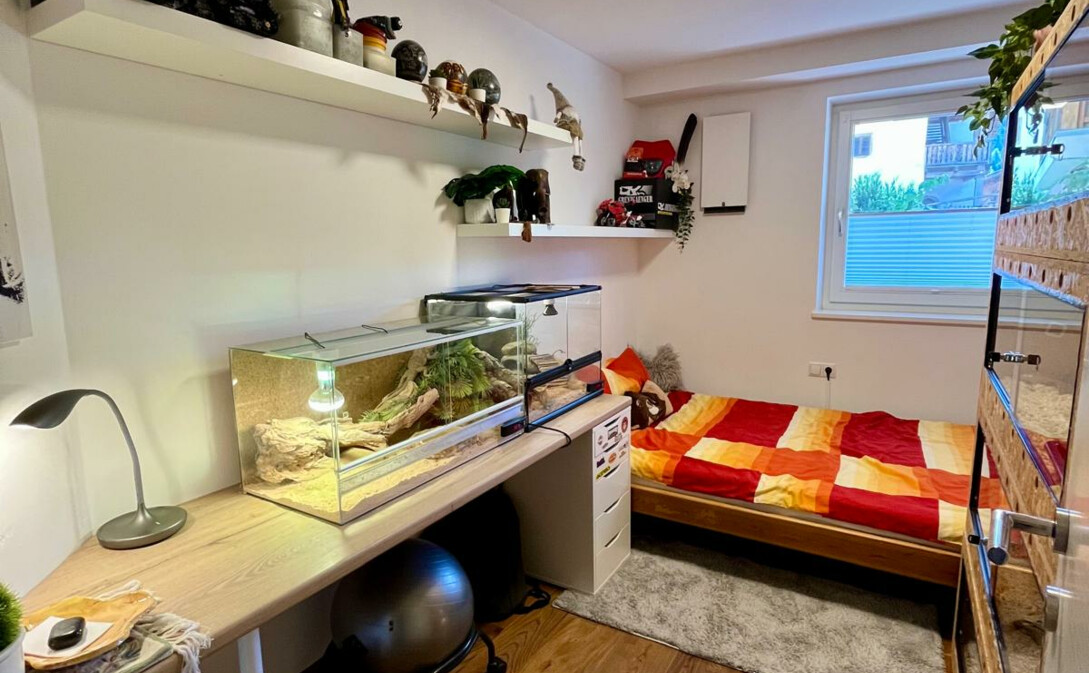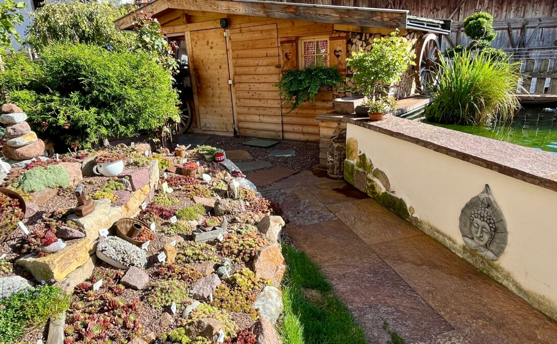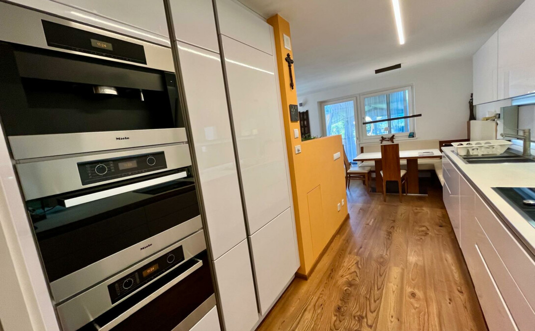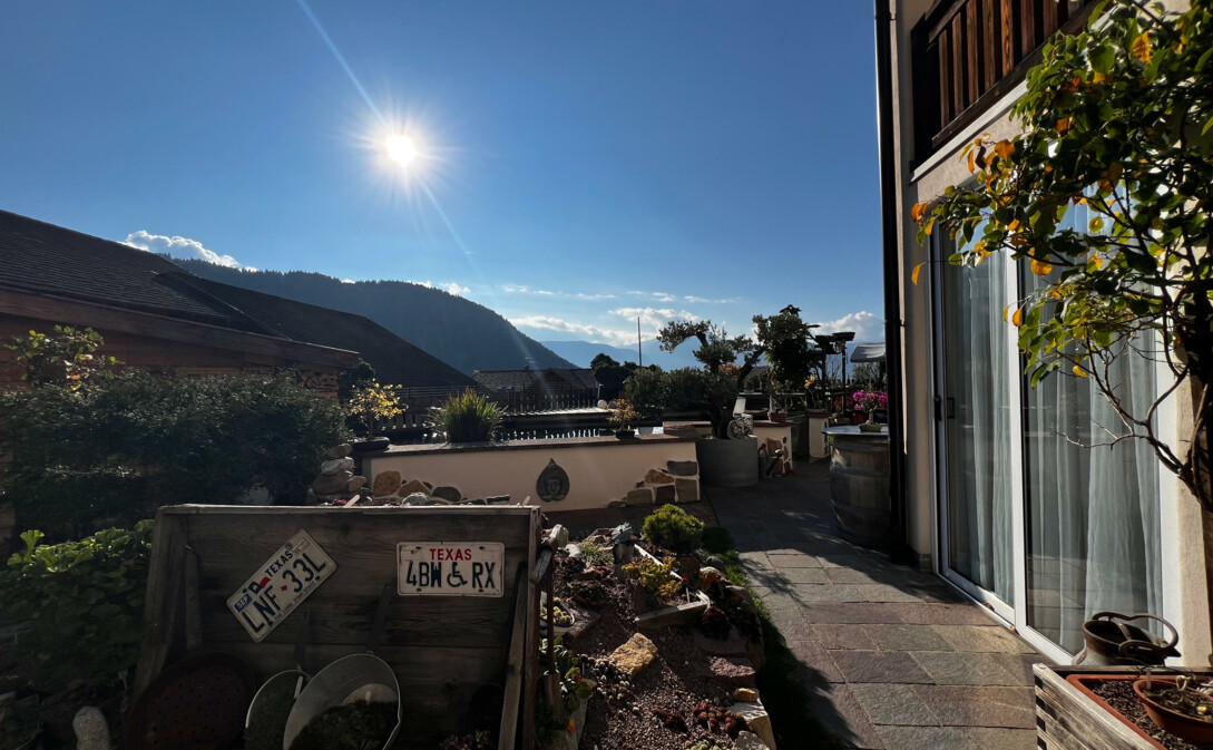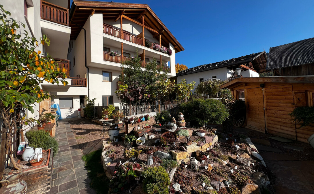 Punto di forza è senza dubbio il grande giardino di circa 250 m², curato nei minimi dettagli, con un laghetto naturale balneabile e cinque koi giapponesi — un’oasi di relax e benessere perfetta per rinfrescarsi nelle giornate estive. La terrazza, esposta a sud-est, offre una magnifica vista panoramica sul Monte Lucco (Laugenspitze). L’esposizione garantisce sole per tutto l’anno e un’atmosfera di assoluta tranquillità.