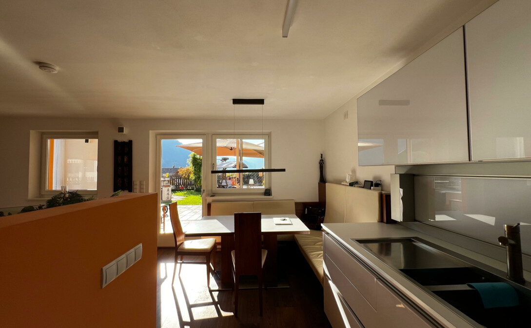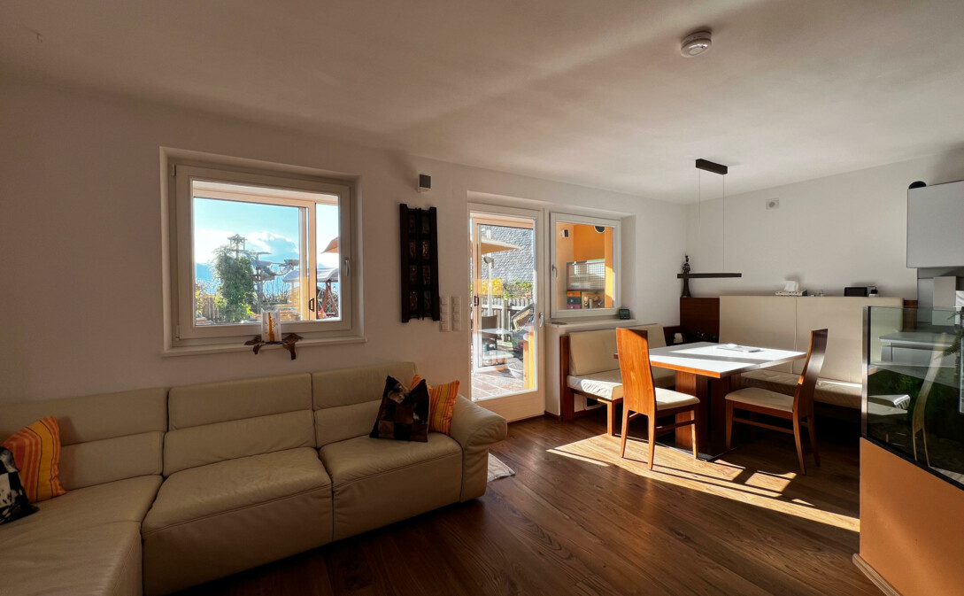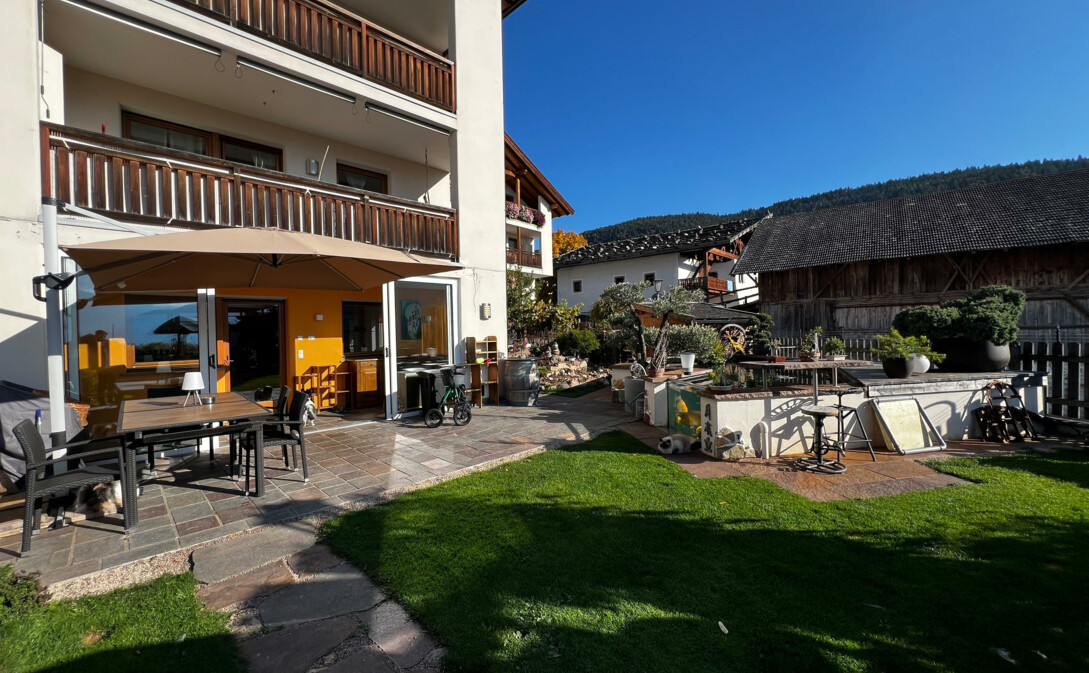 In vendita un eccezionale appartamento con giardino a Meltina, frazione Verschneid, che unisce abitare moderno e vita a contatto con la natura.