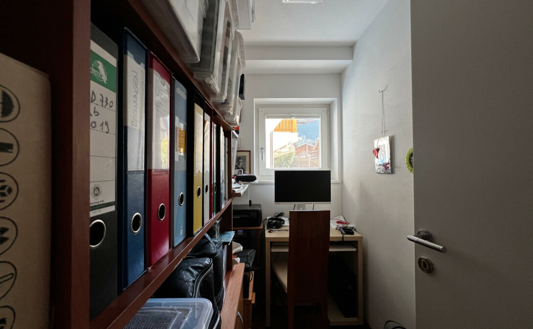 L’appartamento dispone di una superficie netta di circa 110 m² ed è comodamente raggiungibile tramite ascensore. La disposizione interna è funzionale e accogliente: ampio soggiorno con cucina, tre camere da letto, un bagno finestrato, un WC di servizio, un piccolo ufficio e una pratica dispensa.