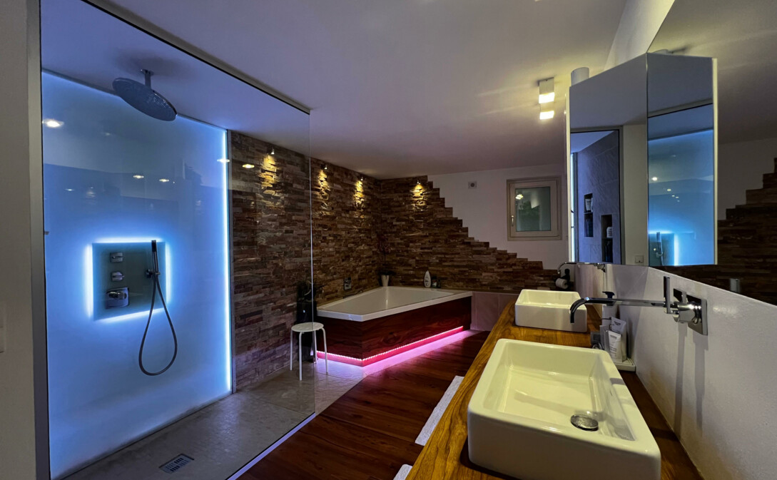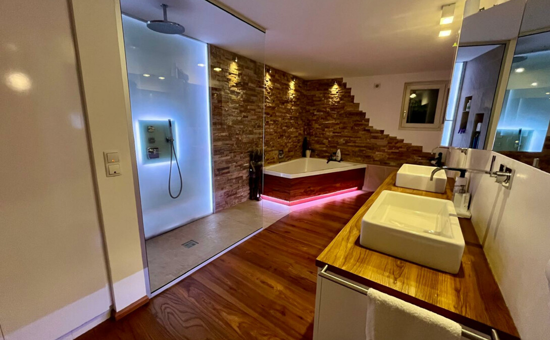 Le dotazioni tecniche e impiantistiche sono di altissimo livello: sistema Smart Home con impianto audio integrato, impianto di aspirazione centralizzata, serbatoio per l’acqua piovana con irrigazione automatica e sensore di pioggia, impianto addolcitore per tutta la casa, zanzariere in tutte le finestre e porte, nonché un impianto di ventilazione meccanica controllata con recupero di calore. Il riscaldamento avviene tramite impianto a pavimento alimentato da caldaia a pellet, regolabile in ogni ambiente.
