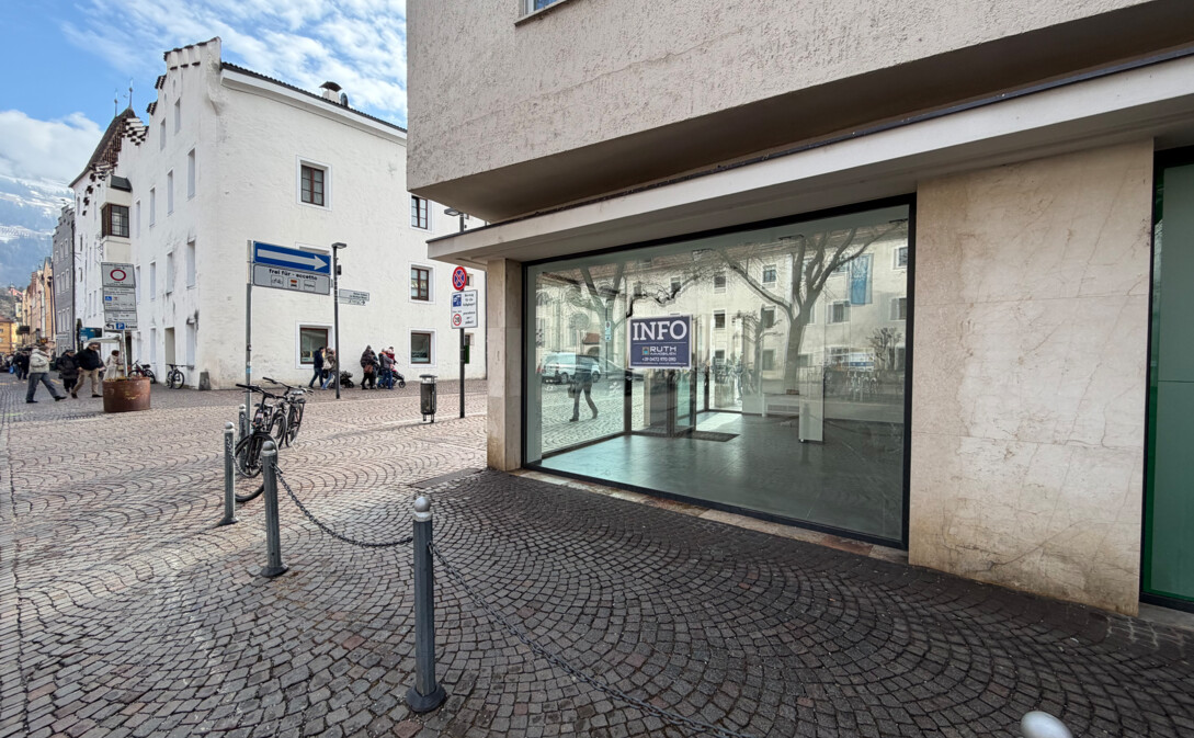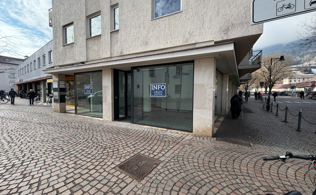 In una posizione assolutamente di primo livello a Bressanone (Vicolo del Grano / Via Roma) affittiamo un interessante negozio d’angolo con eccellente visibilità e alto passaggio pedonale.