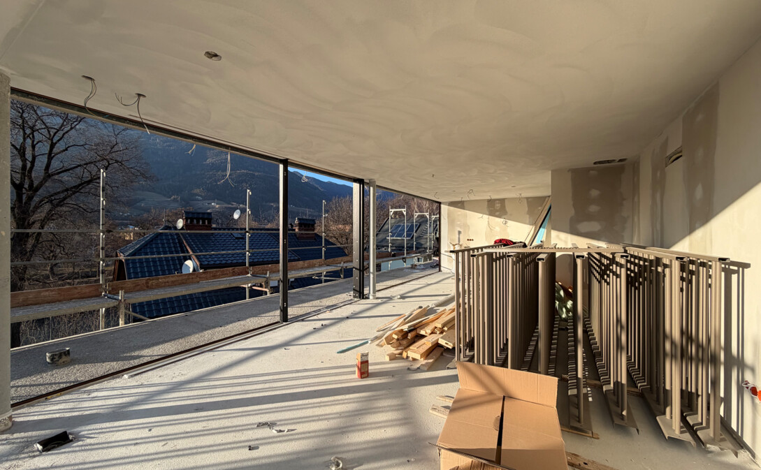 Finestre per tetti di alta qualità, realizzate su misura, che si estendono dall’altezza del parapetto fino al soffitto, garantiscono un’eccezionale luminosità naturale e una sensazione di spazio ampia e ariosa.