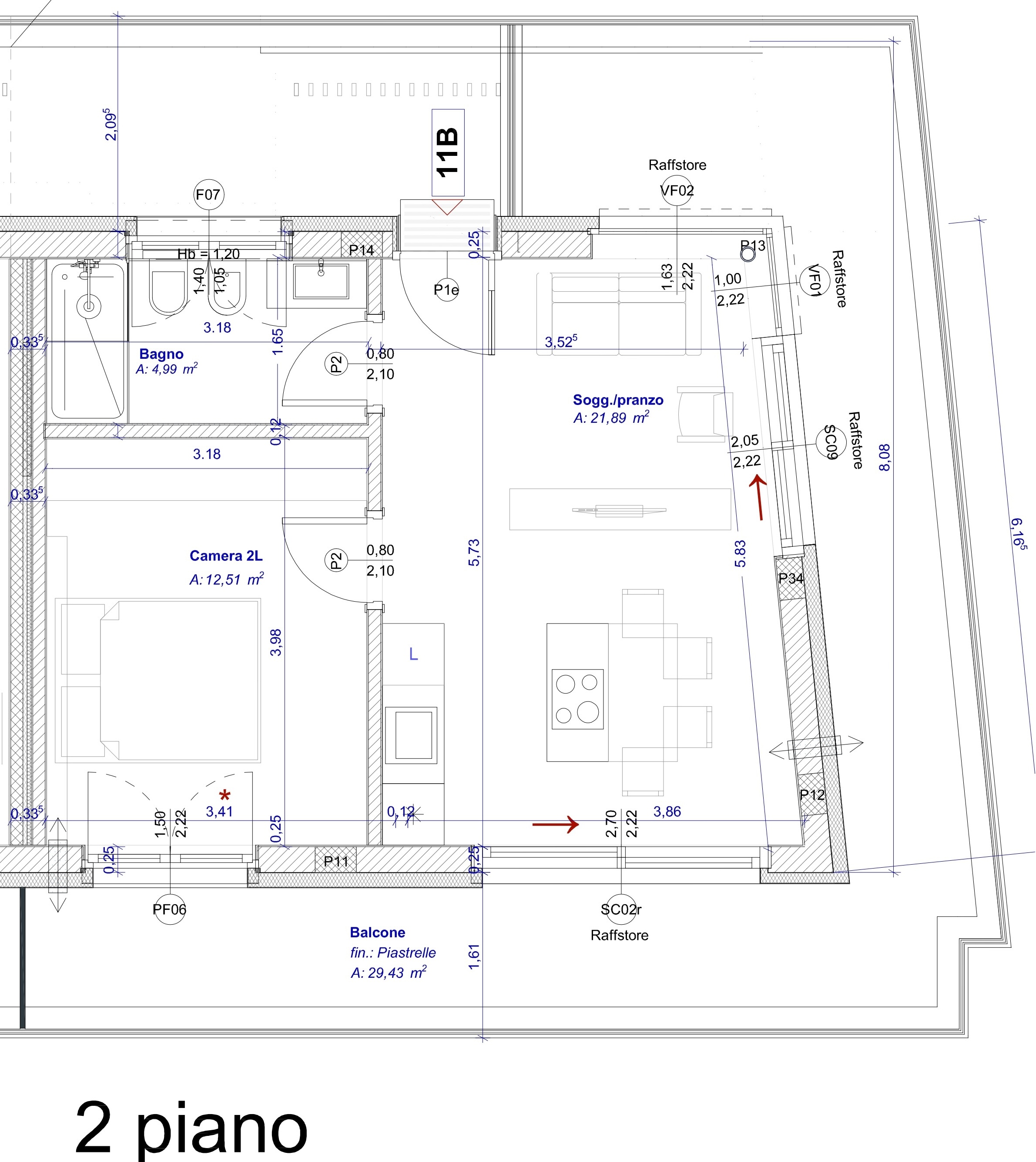 L'appartamento si trova al secondo piano ed è composto da ingresso, soggiorno con cucina, stanza da letto, bagno finestrato e terrazza.